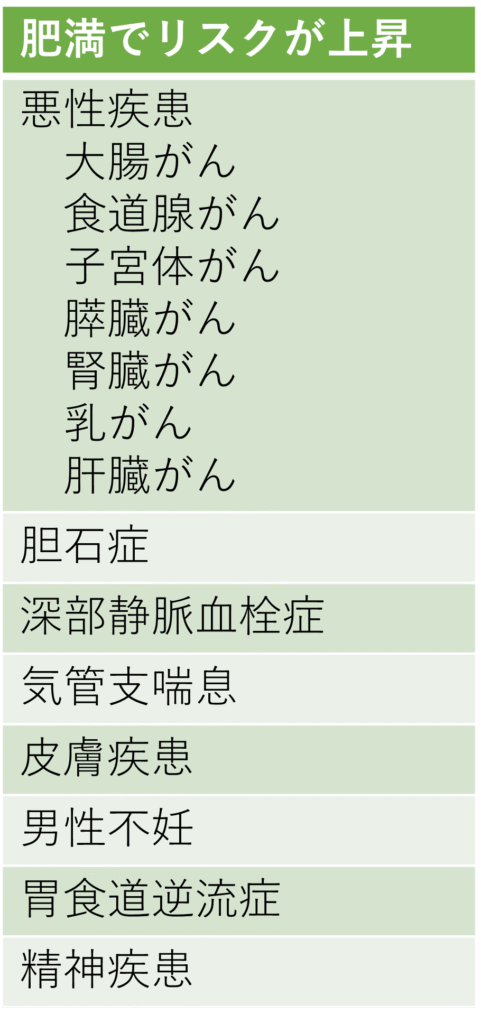 糖尿病だけでない、肥満症で高まる病気のリスクがたくさんある