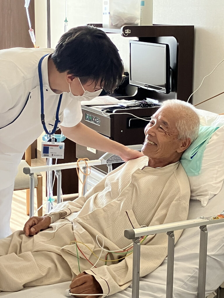 ユマニチュードは、ケアを受ける人のみではなく、ケアを行う人も精神的な負担が減り、良好な関係を築くことでケアがスムーズに行えるようになります。当院では、高齢者の患者さんに限定することなく、「ひと」の尊厳を大事にしたユマニチュードケアの実践は、患者さんの力を生かし、看護師のやりがいも高めると考え取り組んでおります。
